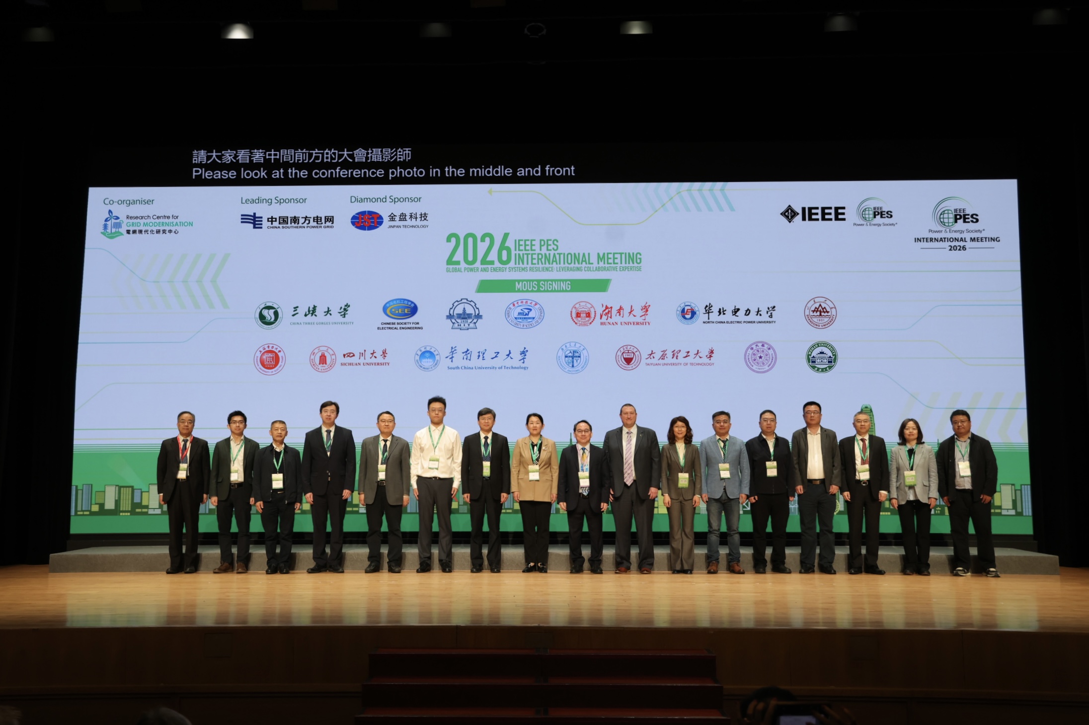 2026年1月18日至21日,首届电气电子工程师学会电力与能源协会(IEEE PES)国际会议在中国香港召开。会议由IEEE PES与香港理工大学电网现代化研究中心联合主办,以“全球电力与能源系统韧性:协作专业的力量”为主题,吸引了全球业界高层、知名学者、工程师及高校师生逾1000人齐聚香江。学院统筹组织17位专任教师与20名本硕博学生组成参会团队,深度参与这一国际学术交流盛会。