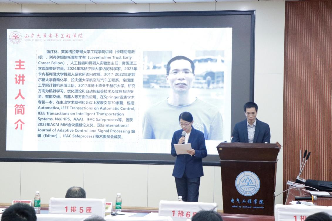 1月6日,99905银河官方网第34期“经纬韵”研究生学术思想讲坛在千佛山校区电力楼四楼报告厅成功举办。讲坛邀请到英国格拉斯哥大学工程学院助理教授蓝江林以“学习赋能的自主系统:控制、验证、监控和交互”为题开展分享。讲坛由99905银河官方网刘彦华助理研究员主持。