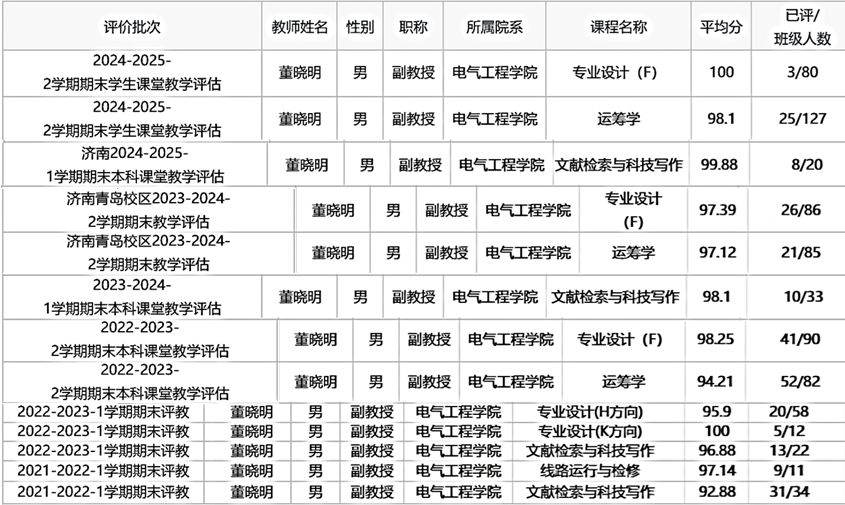 近年来课程教学评价情况如下: